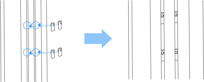 Place four nuts into the rail per tray, arranging them as shown on the right.