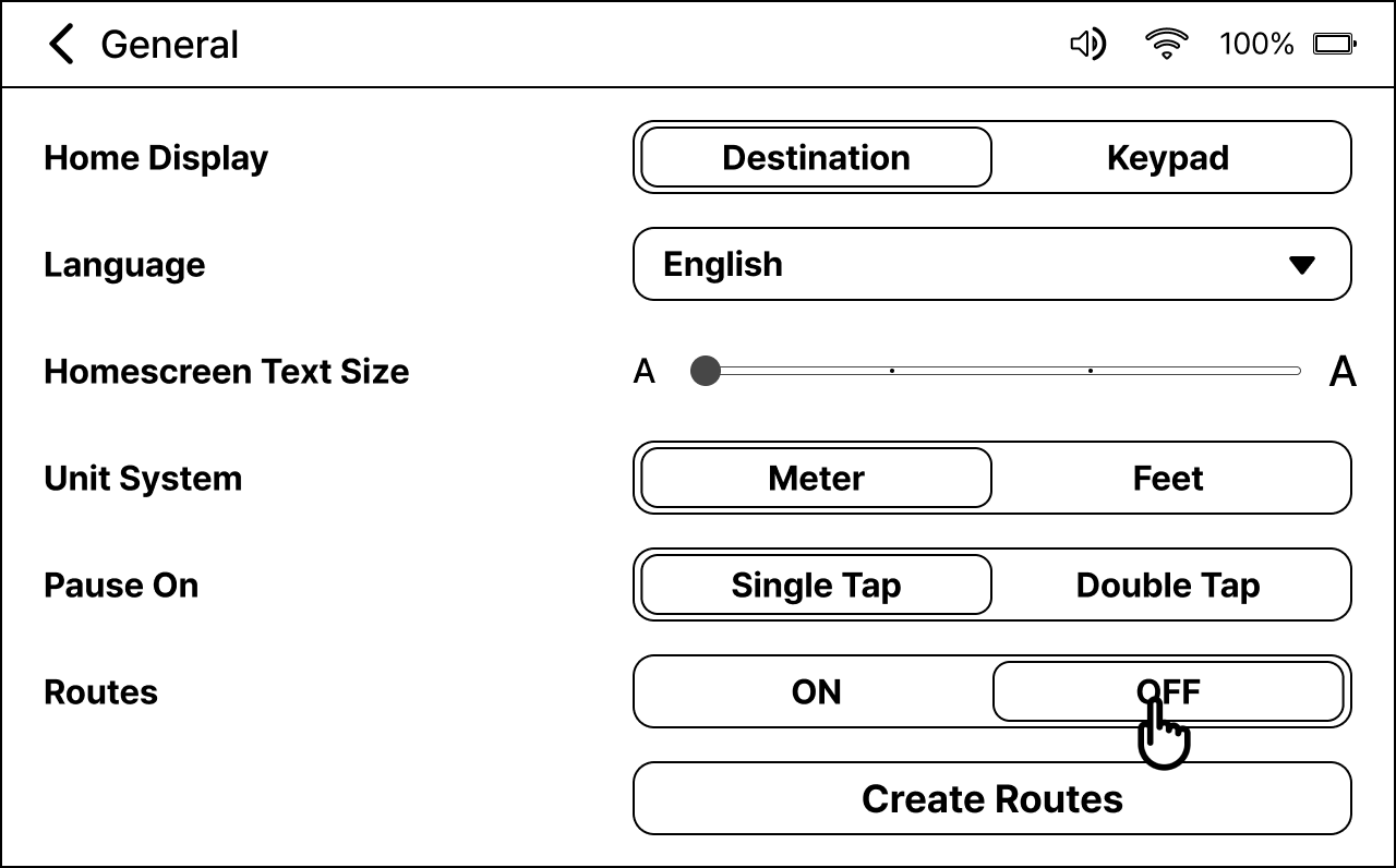 When the robot arrives at the destination, a voice prompt occurs saying, “Arrived at the destination.” You can turn it off by switching it to OFF.