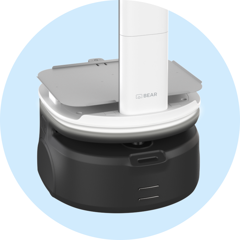 It is located at the bottom of the robot, and the color of the base LED changes per the robot's operational status.