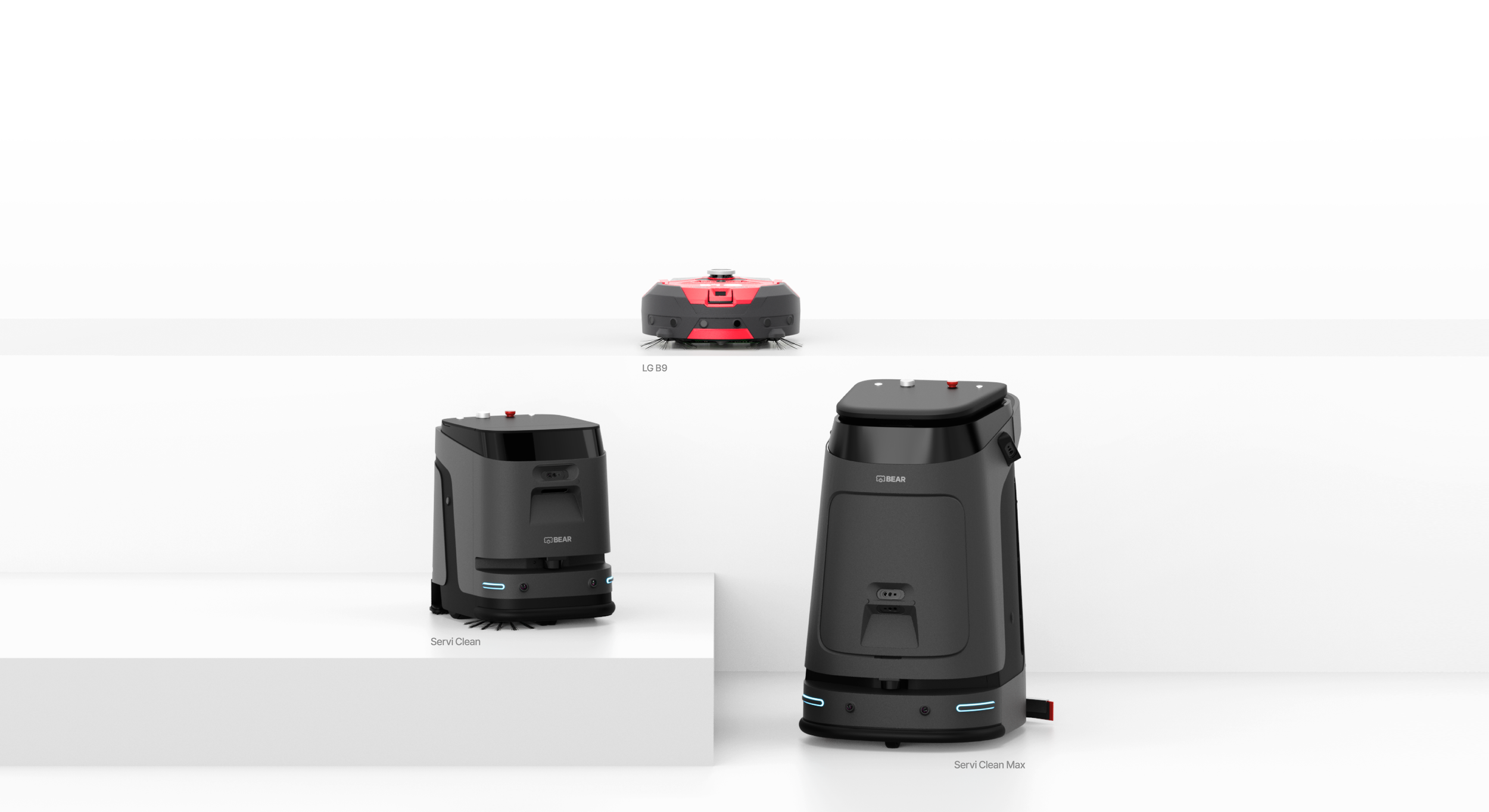 Discover the features and specifications of Servi Clean, Servi Clean Max, and LG B9 industrial cleaning robots. Bear Robotics provides automated solutions for sweeping, mopping, vacuuming, and floor scrubbing in commercial and hospitality environments.